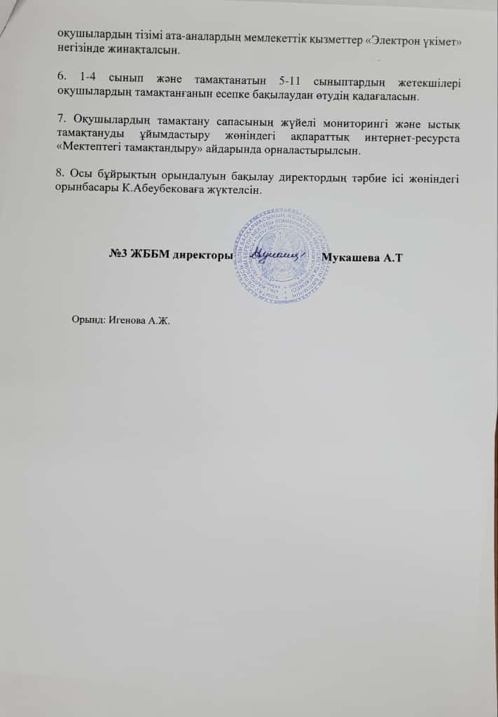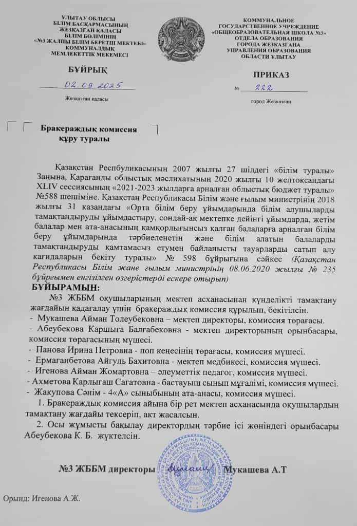 Профилактикалық кеңесінің жоспары , бұйрығы