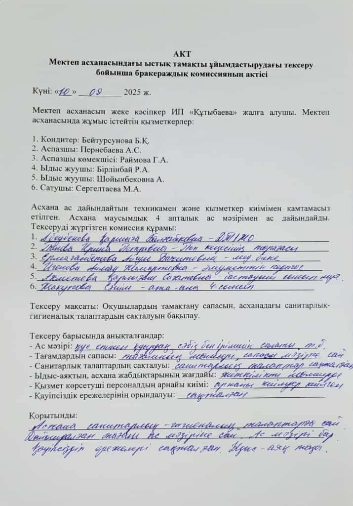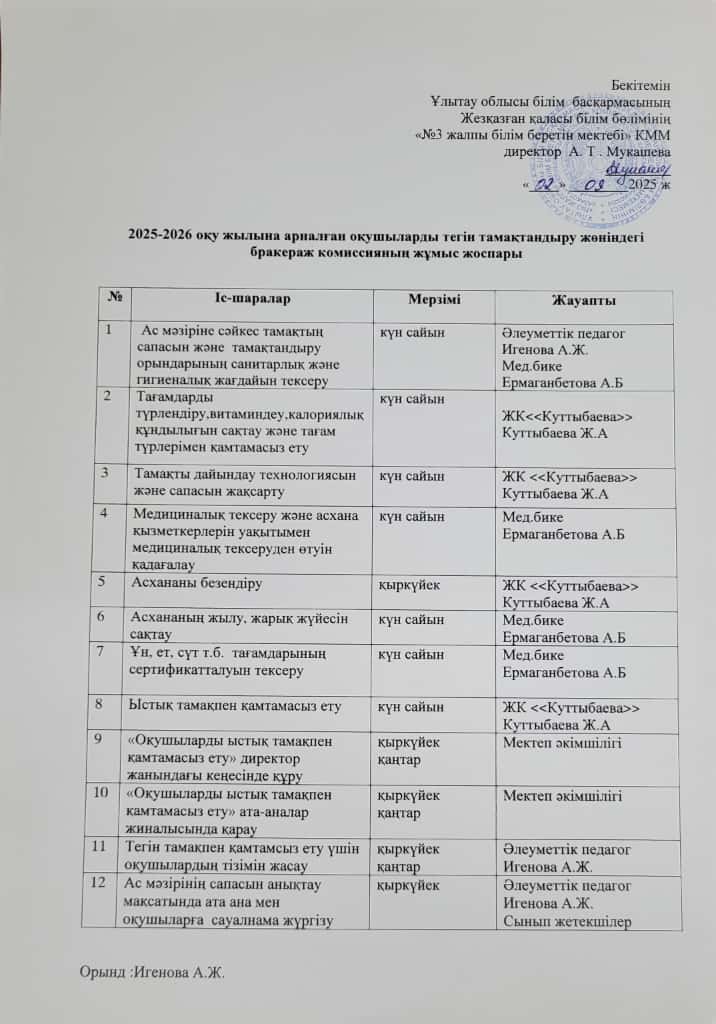 Профилактикалық кеңесінің жоспары , бұйрығы