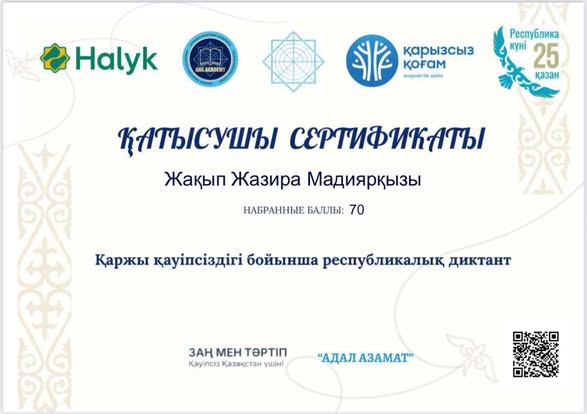 Республикалық қосымша білім беру оқу - әдістемелік орталығының 2025 2 №ДЭР-20-06-06/929-И хатына сәйкес, Қазақстан Республикасы Қаржылық мониторинг агенттігінің халықтың қаржылық сауаттылығын арттыру және азаматтарды алаяқтық схемаларға тартудың алдын алу мақсатында 2025 жылдың 10-20 қазан аралығында №3 ЖББМде мектеп ұстаздары мен 7-11 сынып оқушылары қаржылық қауіпсіздік бойынша тест диктантіне қатысып нәтижесін көріп отырмыз. Тестілеуден өту арнайы https://amlacademy.kz/finiq платформасы мен QR-код арқылы онлайн форматында жүргізілуде.