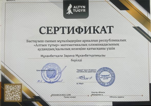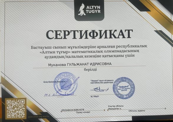 Муканова Гульжан Идрисовна және Мұханбетқали Зарина Мұханбетқалиқызы сертификатқа ие болды.