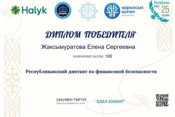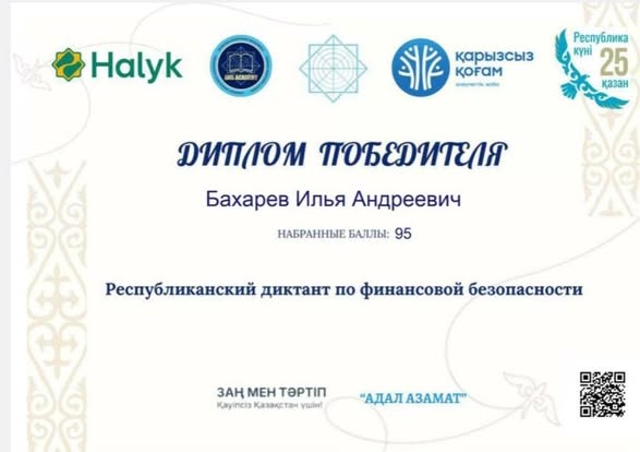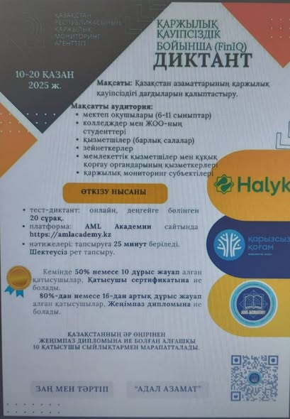 сілтемесі арқылы қаржылық қауіпсіздік бойынша республикалық диктанттан мектебіміздің оқушылары мен педагогтері өтті.